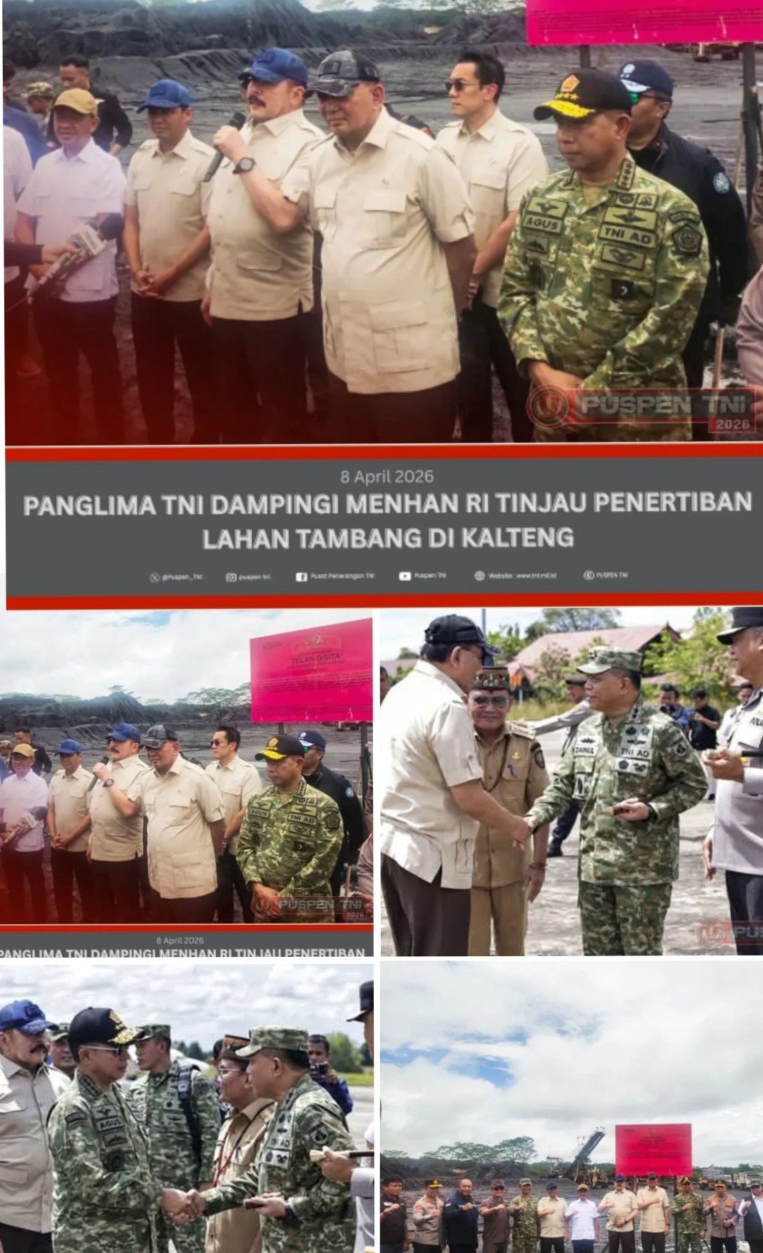 (Puspen TNI). Panglima TNI Agus Subiyanto mendampingi Menteri Pertahanan RI Sjafrie Sjamsoeddin meninjau lahan PT Asmin Koalindo Tuhup (AKT) di Kabupaten Murung Raya, Kalimantan Tengah, Hari Selasa (7/4/2026).