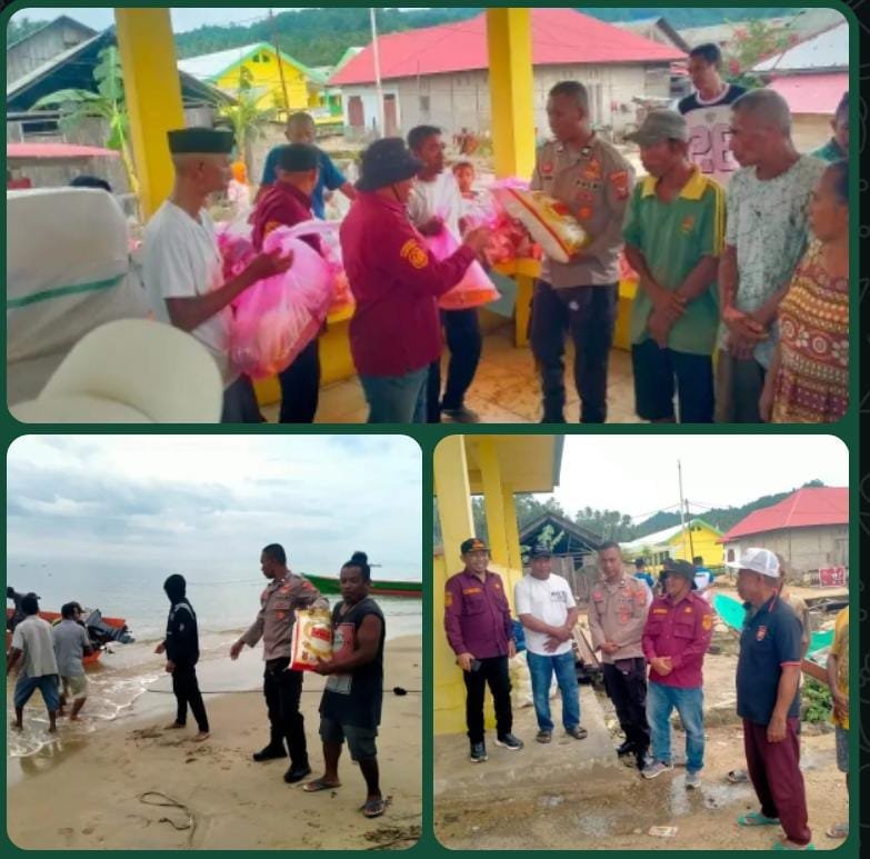 Sebagai wujud kehadiran Polri di tengah masyarakat, Polsek Mangoli Timur melaksanakan pendampingan kegiatan penyaluran bantuan sosial dari Pemerintah Daerah Kabupaten Kepulauan Sula kepada warga terdampak banjir di Desa Waisakai, Kecamatan Mangoli Utara Timur, Jumat (13/03/2026).